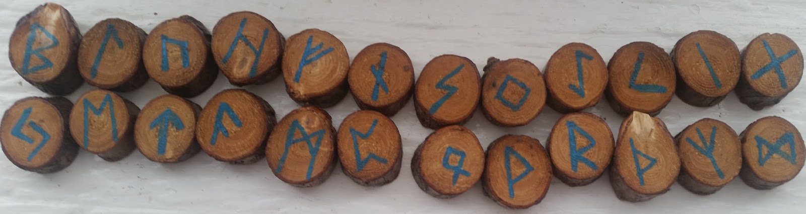 Even though I have known for more than a month that Ansuz would be my 2018 Rune, I still wanted to perform a ritual to recognize it. Last year, I sat with my Runes, holding each one individually in my hands, narrowing it down to Sowilo. When I considered this year's ritual, I saw myself painting Runes. The result is the image above and the process clearly was not about quality painting so much as it was about the process of connecting to my Rune for the year. It's a spatial thing, but it was also a flowing trance-like process. I had a vision in my head that looked very similar to the painting, though I could not see the entire painting in my head; I could see only where individual Runes belonged on it. The ritual was about placing the each Rune in its space as I drew it from the bag. Sitting in my Bay window on this snowy January morning, I drew the Runes, one at a time. (The image below shows the order in which I pulled them.) And, as I drew them, I chose a color that represented that Rune's energy to me and painted the Rune where it was in my image. There was almost no pause during the entire ritual. The resulting visual will serve as my reminder for me this year to not lose focus on the commitment I made to my writing. I will be curious to see how the placement of the other Runes around Ansuz will impact its role as my Rune for the year.